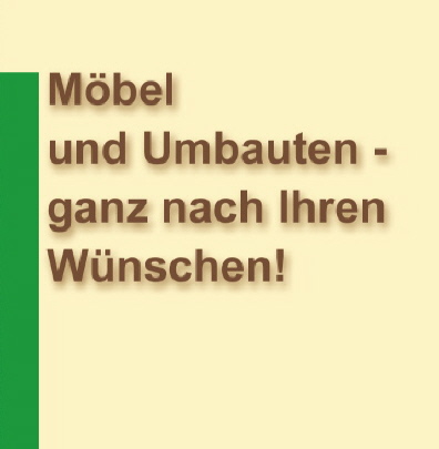 Maßgeschneiderte Möbel in der Holzart Ihrer Wahl sind eine Spezialität von uns. Egal ob es sich um Wohnzimmer, Essecken, Jugend- oder Kinderzimmer handelt. Auch Vereinsräume können gestaltet werden.